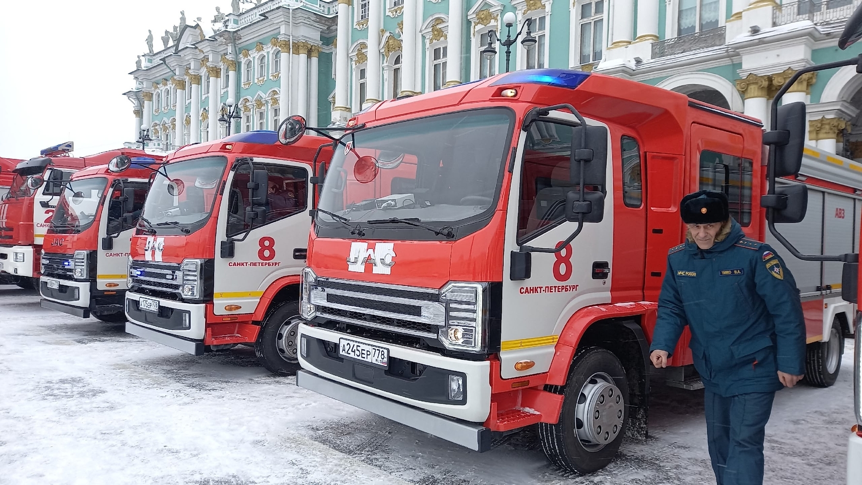 Передача машин разного назначения производится в рамках переоснащения пожарно-спасательных подразделений города, проводимых МЧС России совместно с правительством Санкт-Петербурга. Автоцистерны на шасси JAC уже знакомы огнеборцам Северной столицы: в прошлом году им была поставлена одна такая машина. Нынешняя партия, помимо четырех автоцистерн, включает также уникальный пожарный водозащитный автомобиль. Он предназначен для ликвидации последствий протечек, а также для предотвращения повреждений ценных объектов (архивов, библиотечных фондов, музейных экспонатов) при затоплениях. Машина отправится на службу в Центральный район Санкт-Петербурга, где пожарным приходится работать в зданиях, имеющих историческую ценность.